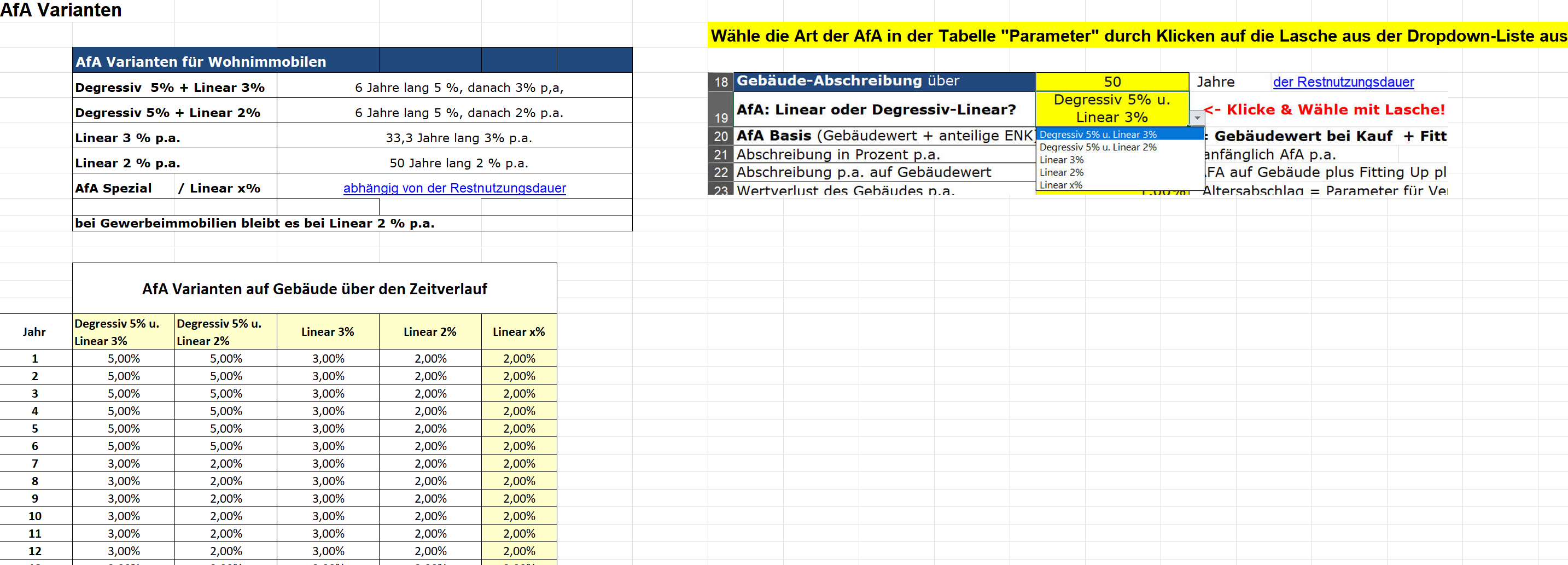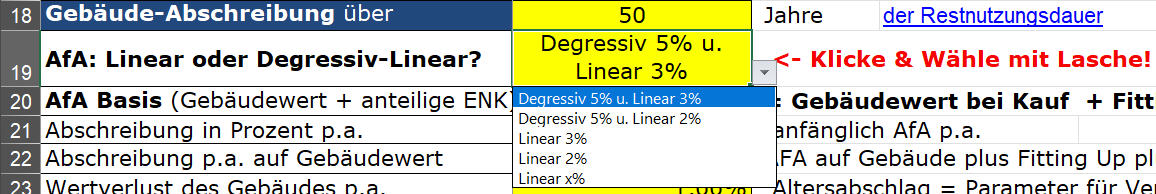 Varianten für Degressive-Linear AfA oder Lineare AfA