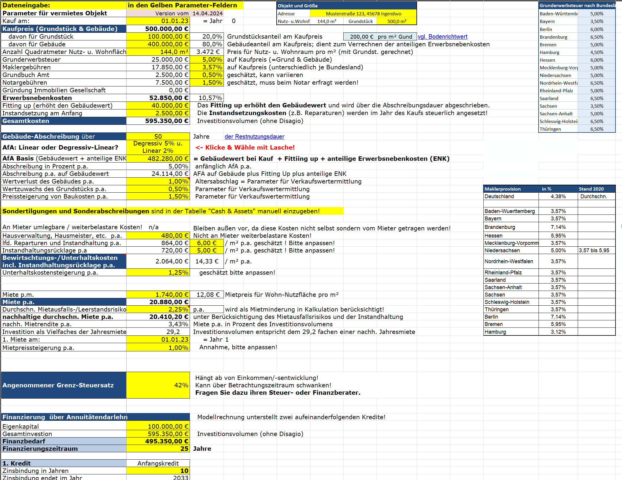 Wie muss ein Immobilien-Investor rechnen? Was wirft eine Immobilie ab? Das Excel-Modell hilft privaten oder professionellen Immobilieninvestoren dabei, Szenario-Berechnungen für den Erwerb und die Vermietung einer Immobilie durchzuführen.