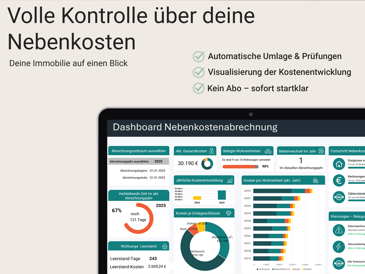 Nebenkostenabrechnung & Betriebskostenabrechner für Vermieter (Excel)