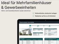Für mehrere Wohneinheiten geeignet (ideal für Ein- und Mehrfamilienhäuser). Das Tool kann jeweils für ein Objekt mit bis zu 24 Einheiten verwendet werden. Bei mehreren Objekten müsste jeweils eine Datei angelegt werden.